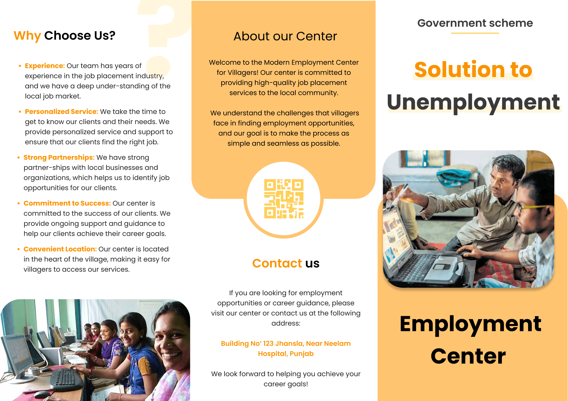A transformative project to establish a systematic method to increase awareness and access to employment and educational resources for high school students situated in rural areas of India. Keeping in mind the limitations of technology, we focused on ensuring the maximum utilization of available resources. Our strategy was to develop a plan to establish employment centers that would also function as community and skill centers for the locals, while also offering information and guidance to not only students but to parents and villagers as well.